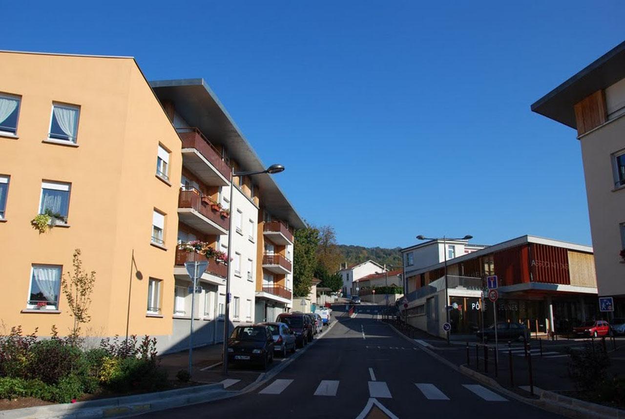 Construction de 53 logements locatifssociauxplus une cellule commerciale en 3 bâtimentspour le compte de Batigère Nord Est. Livraison avril 2009. Label Qualitel H&E, THPE 2005. Sélection LQE 2009.